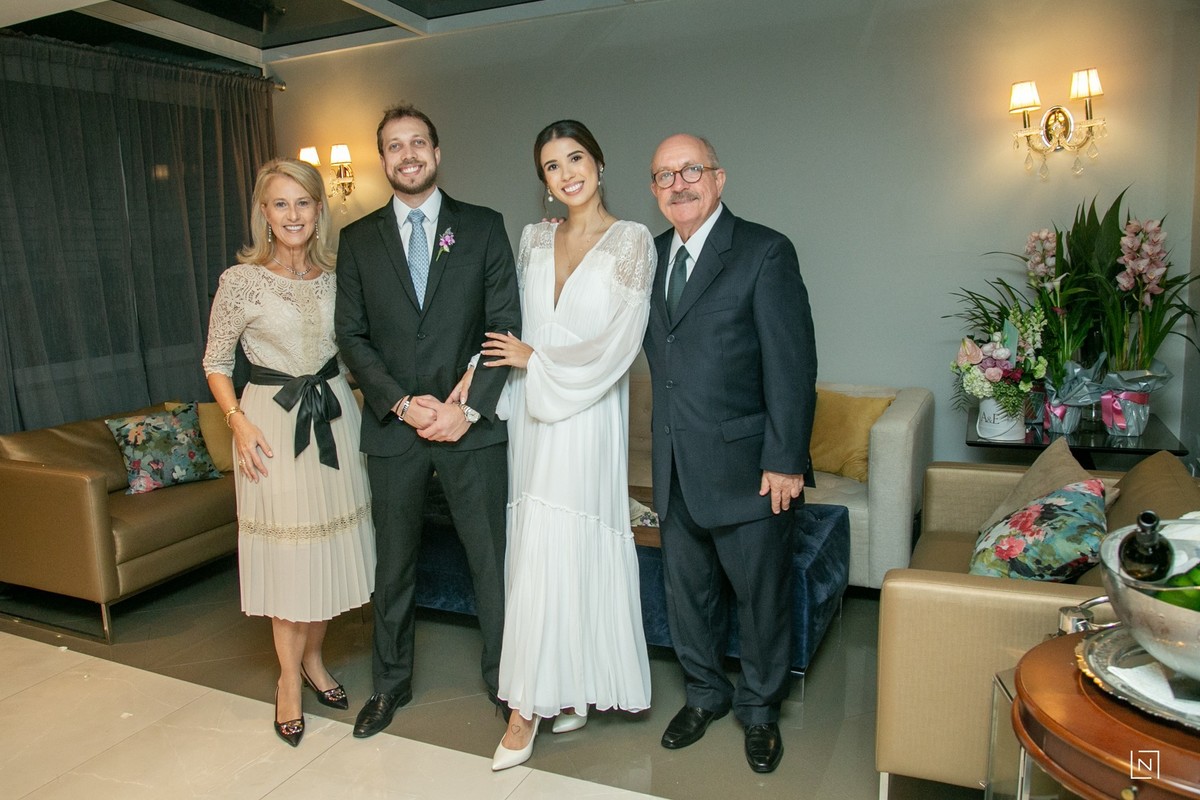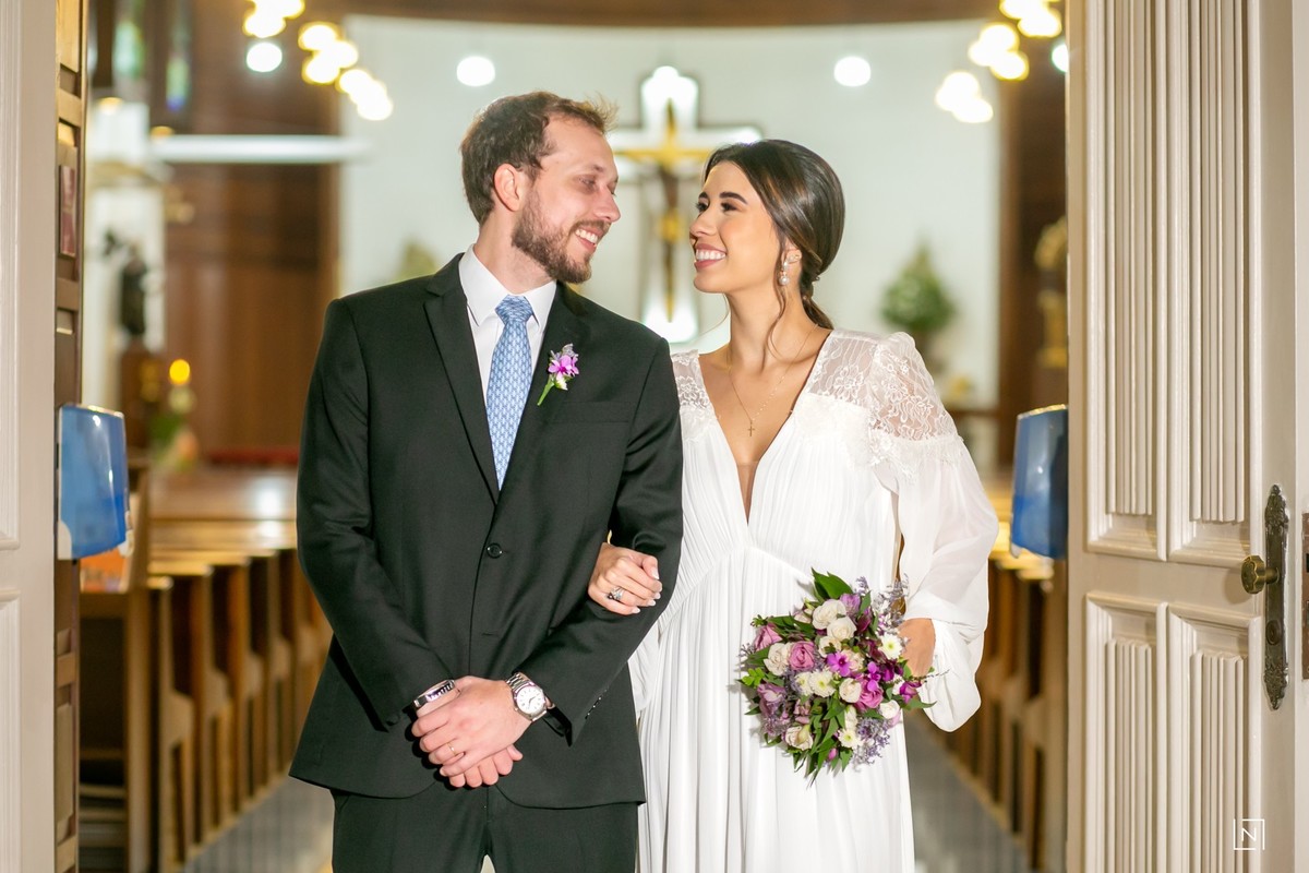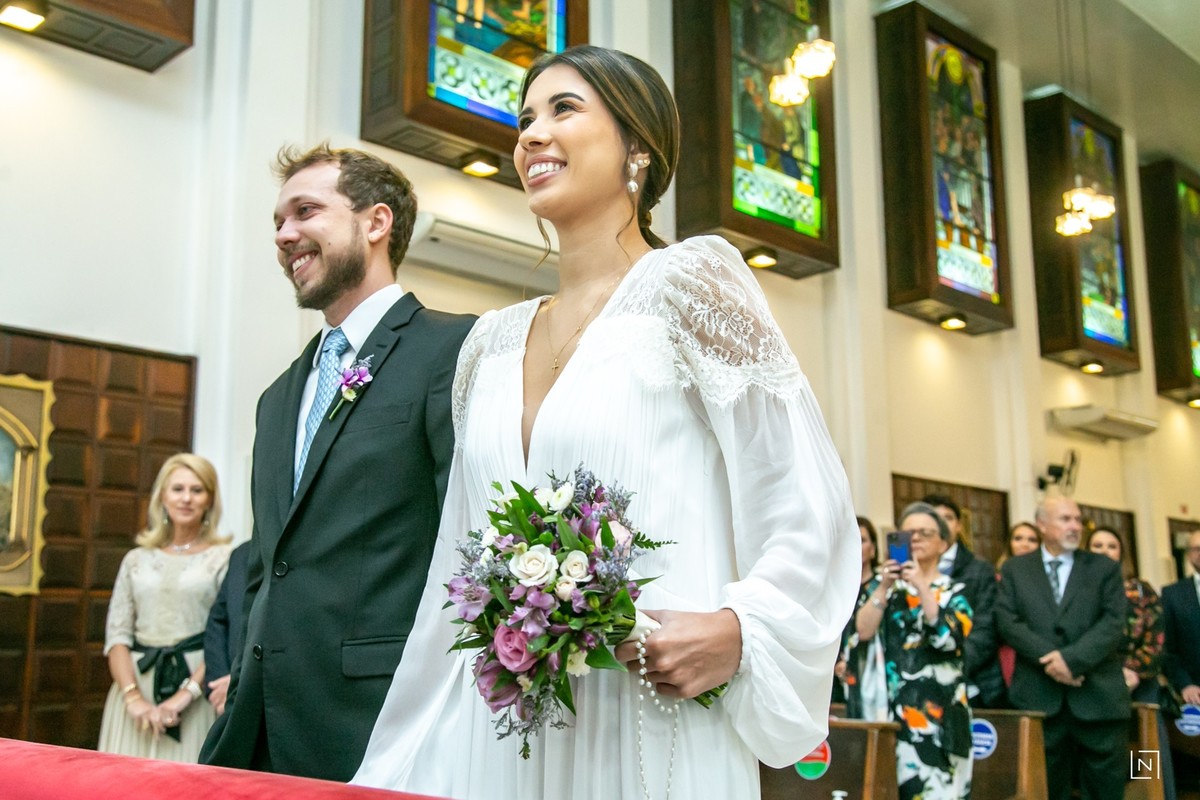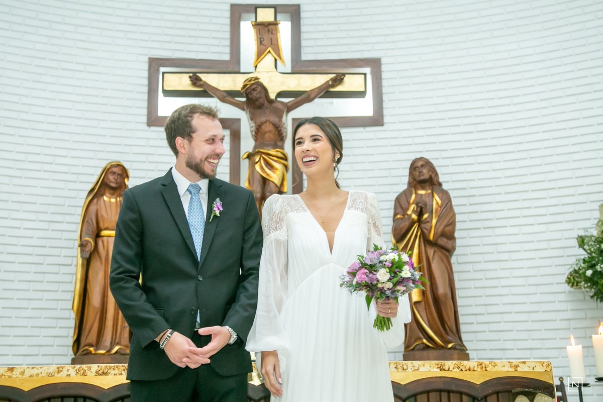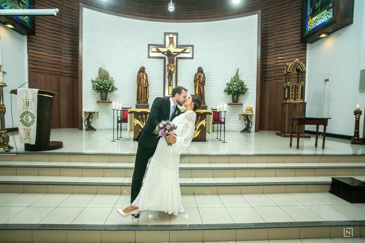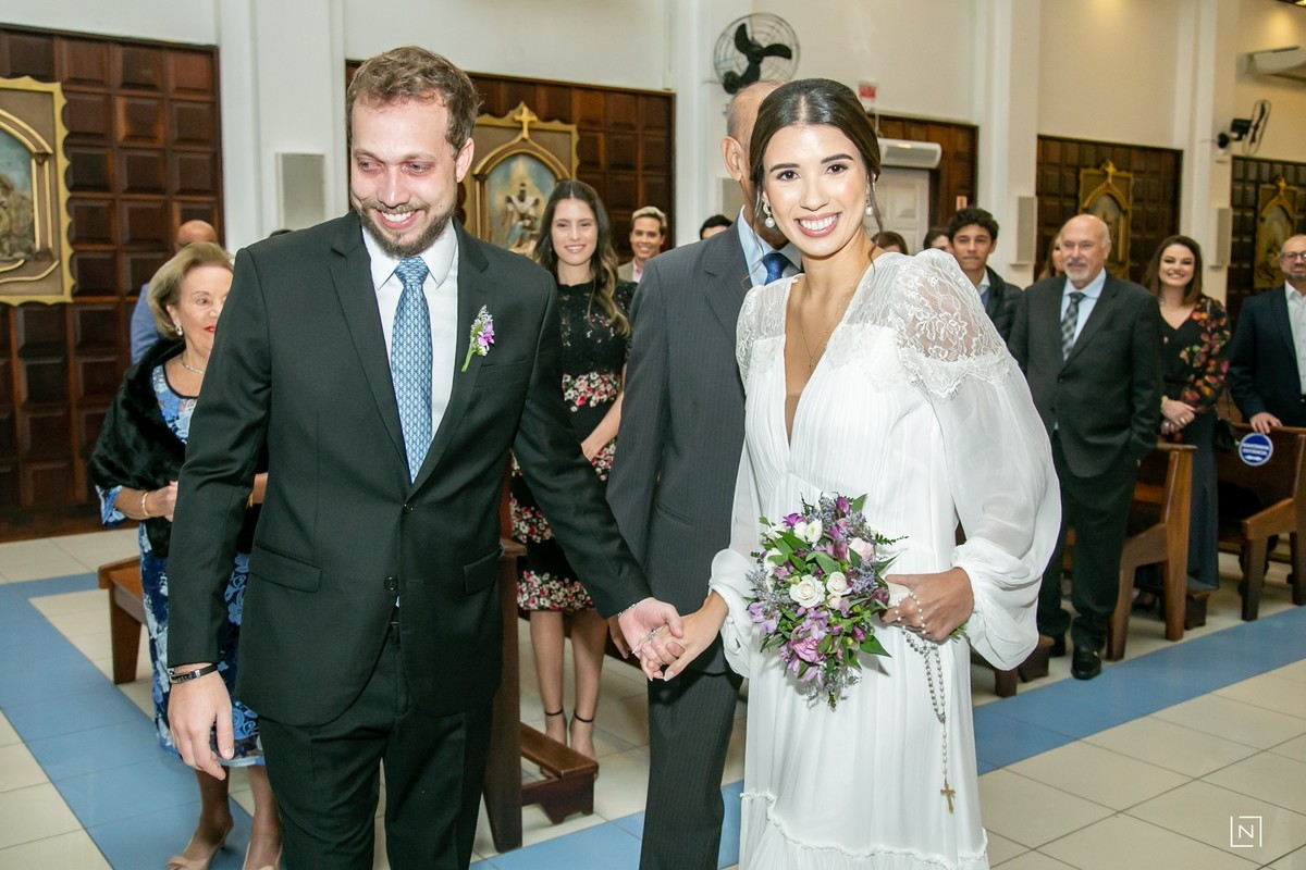 O Casal Agatha e Eduardo reuniram familiares e amigos mais próximos para uma cerimônia íntima e aconchegante no Colégio Catarinense.
