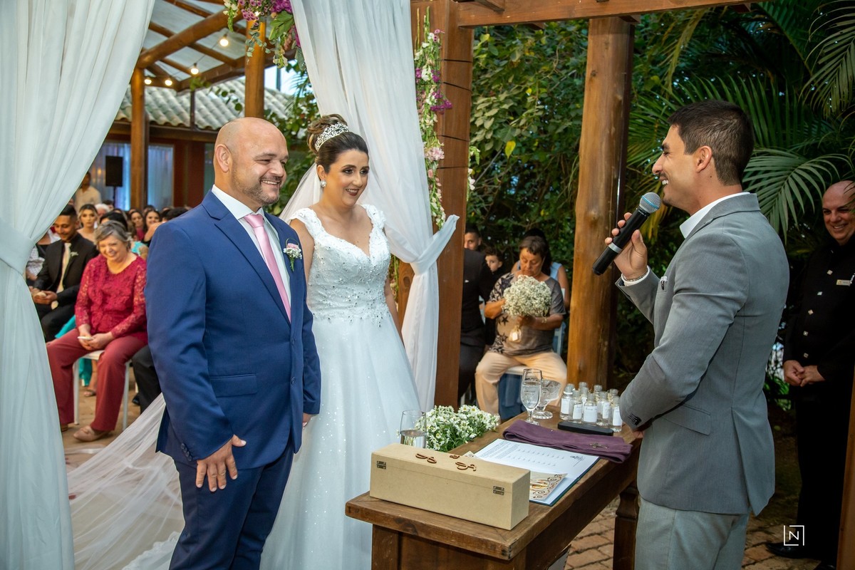 Making of da noiva: Salão Donato Passoni, Making of do noivo: Merel Barber`s Shop, Decoração Estância Biguaçu, Bolo e Doces Suzana Bittencourt, DJ Wesley, Vestido da noiva Center Noivas, Cerimonial Valdir, Celebrante Juliano, Gráfica Cella, Professor de dança Natanael Quadros, Vídeo Inova Video.