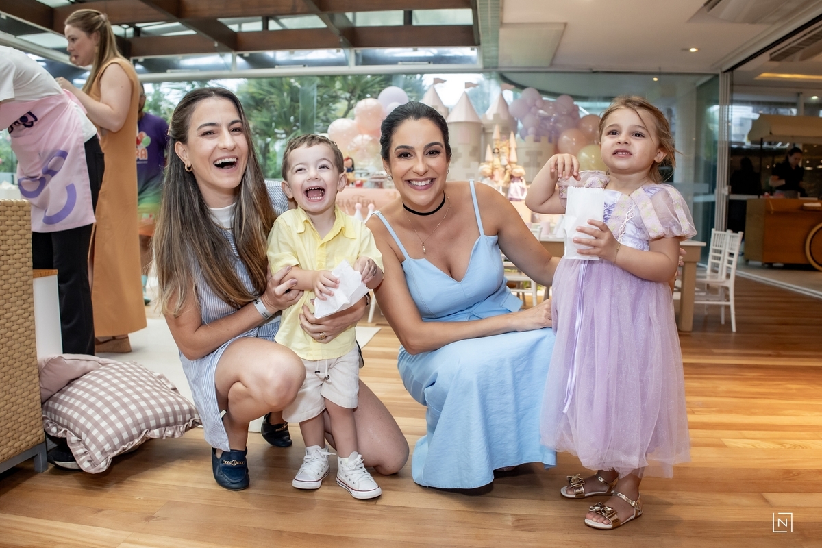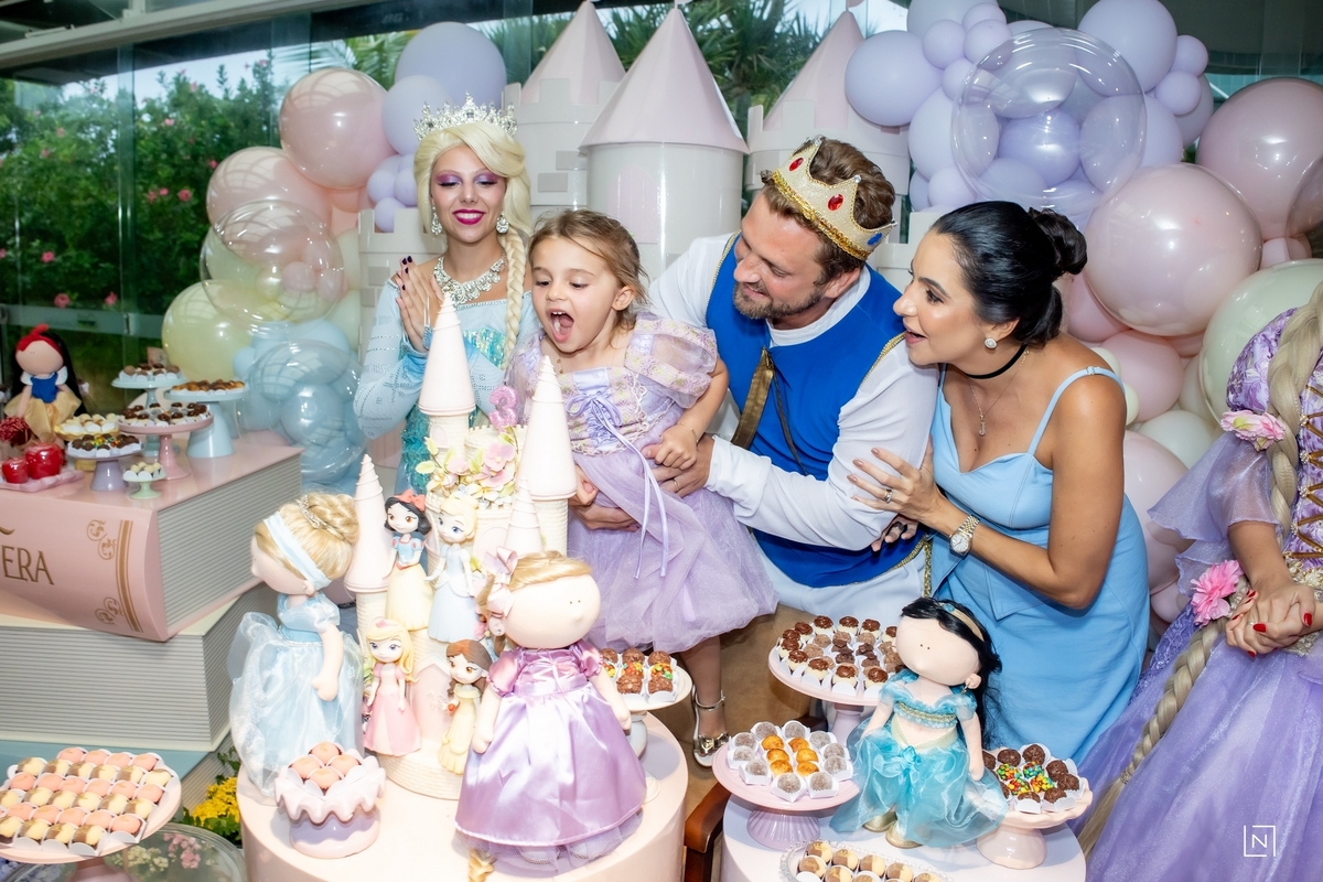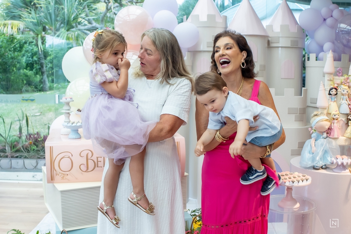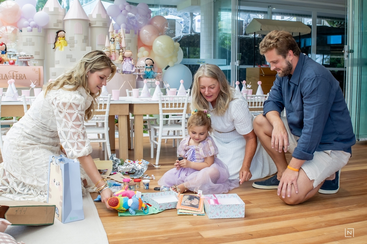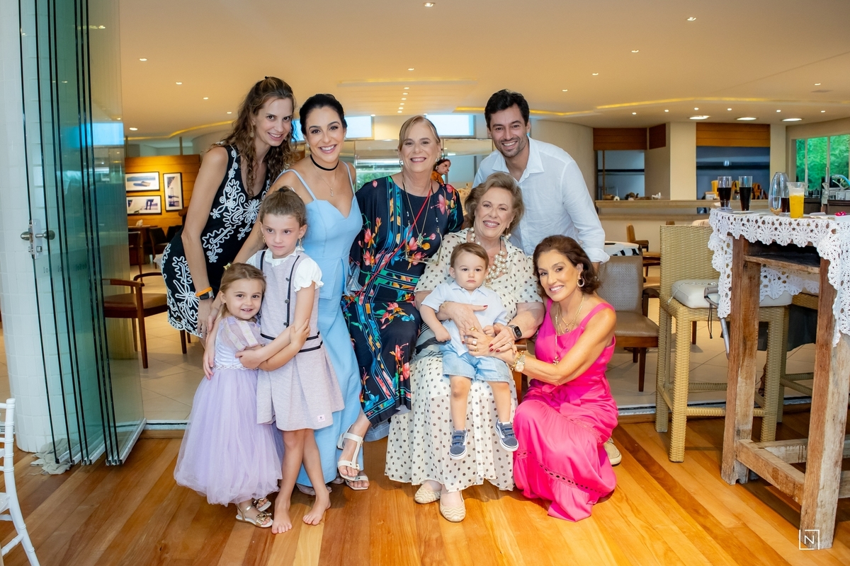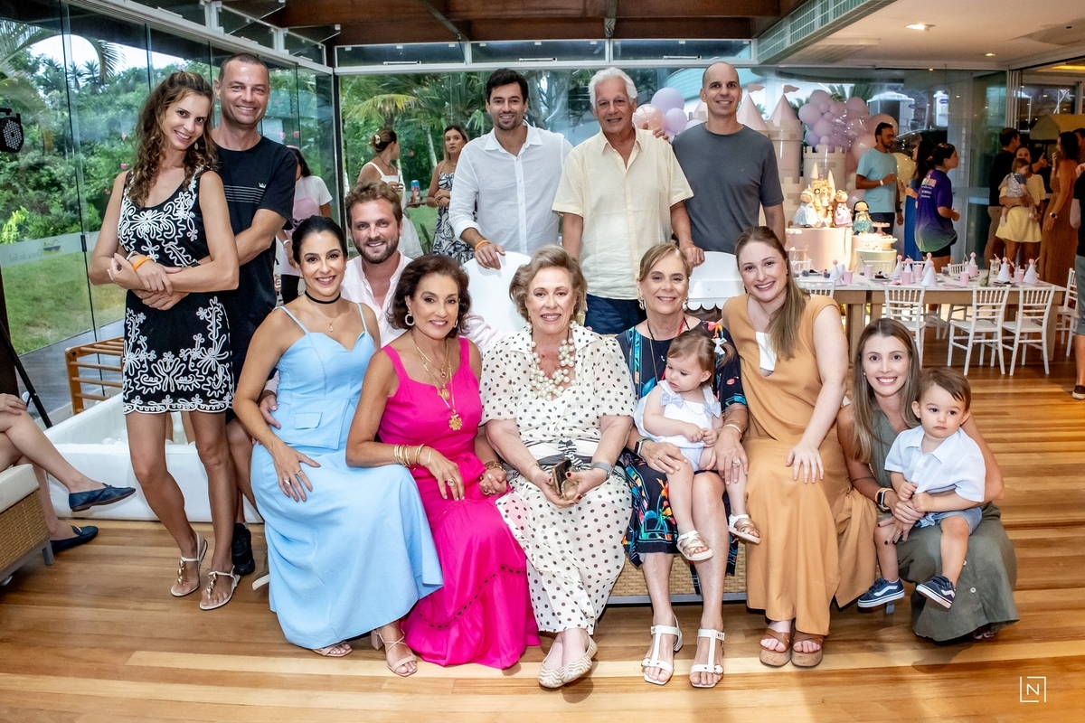 Família reunida para prestigiar a alegria da princesa e do príncipe da Julia.