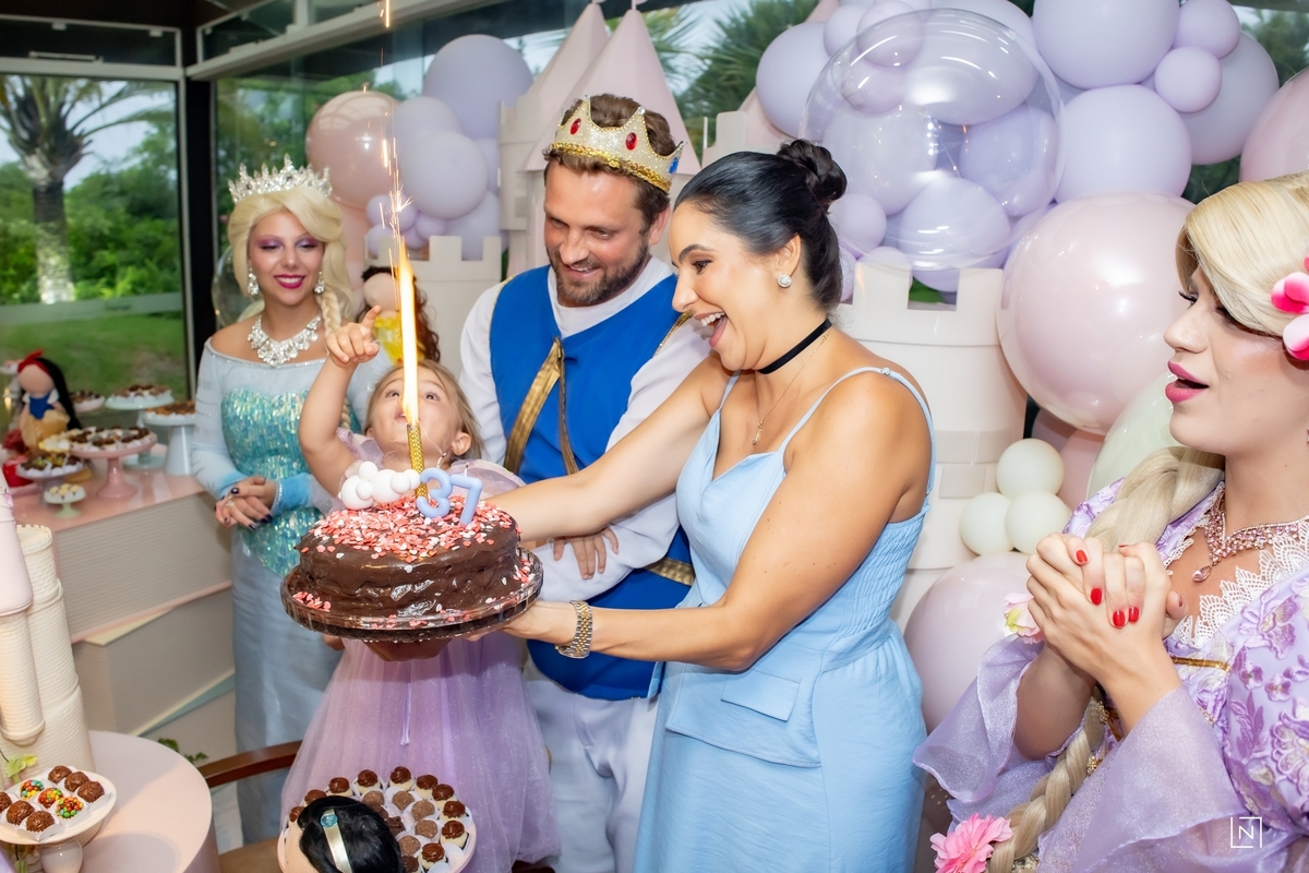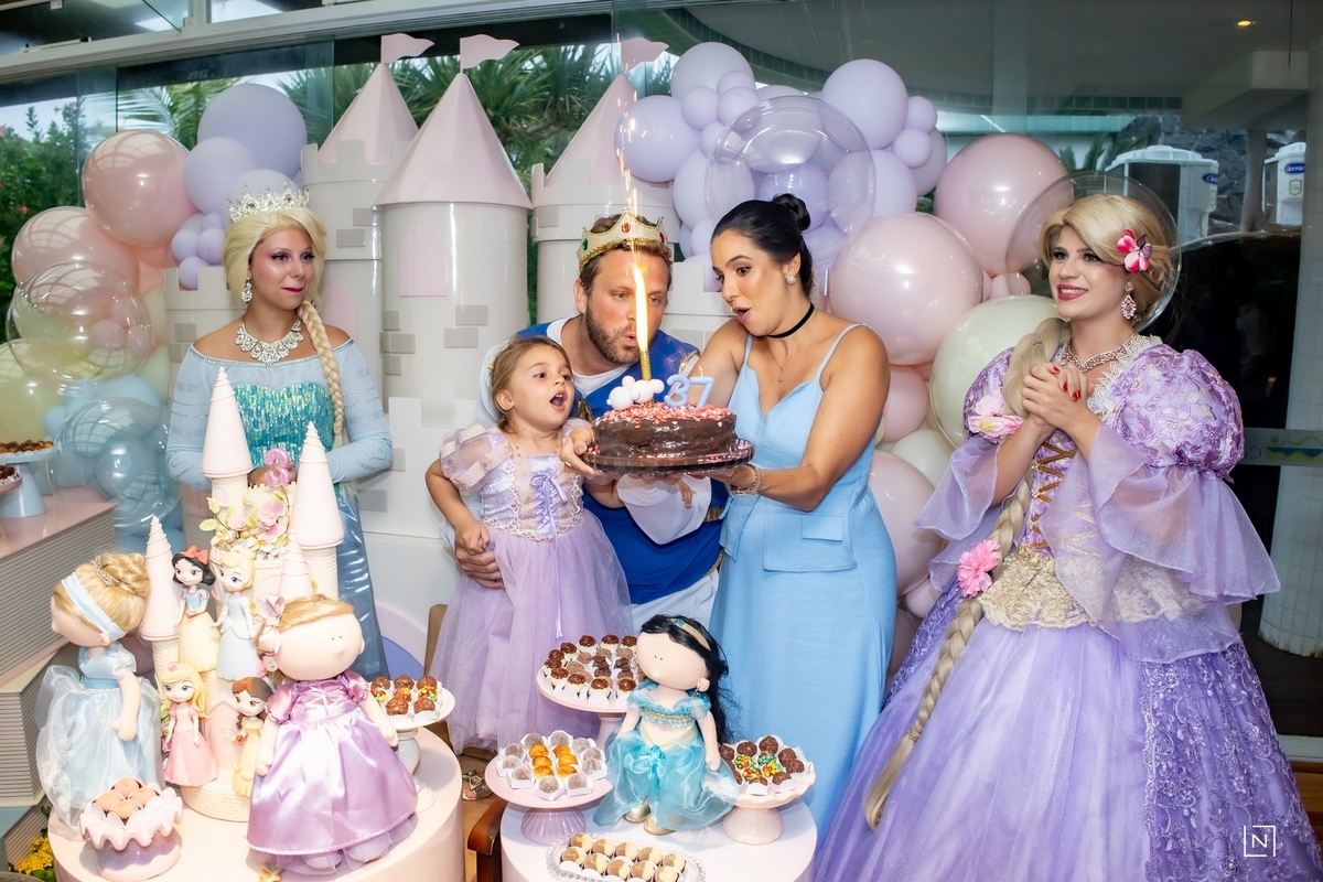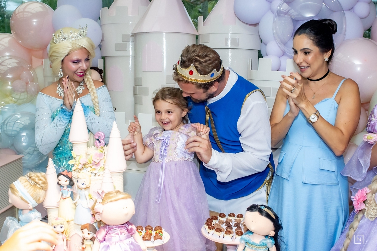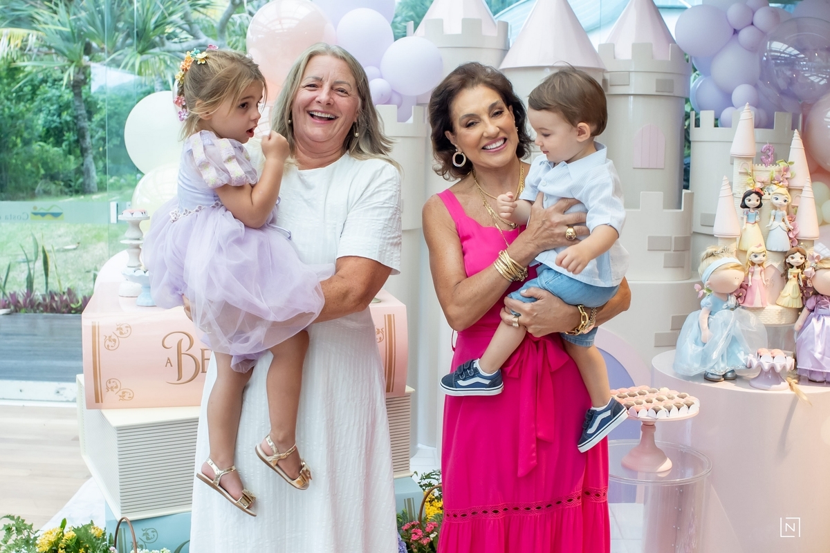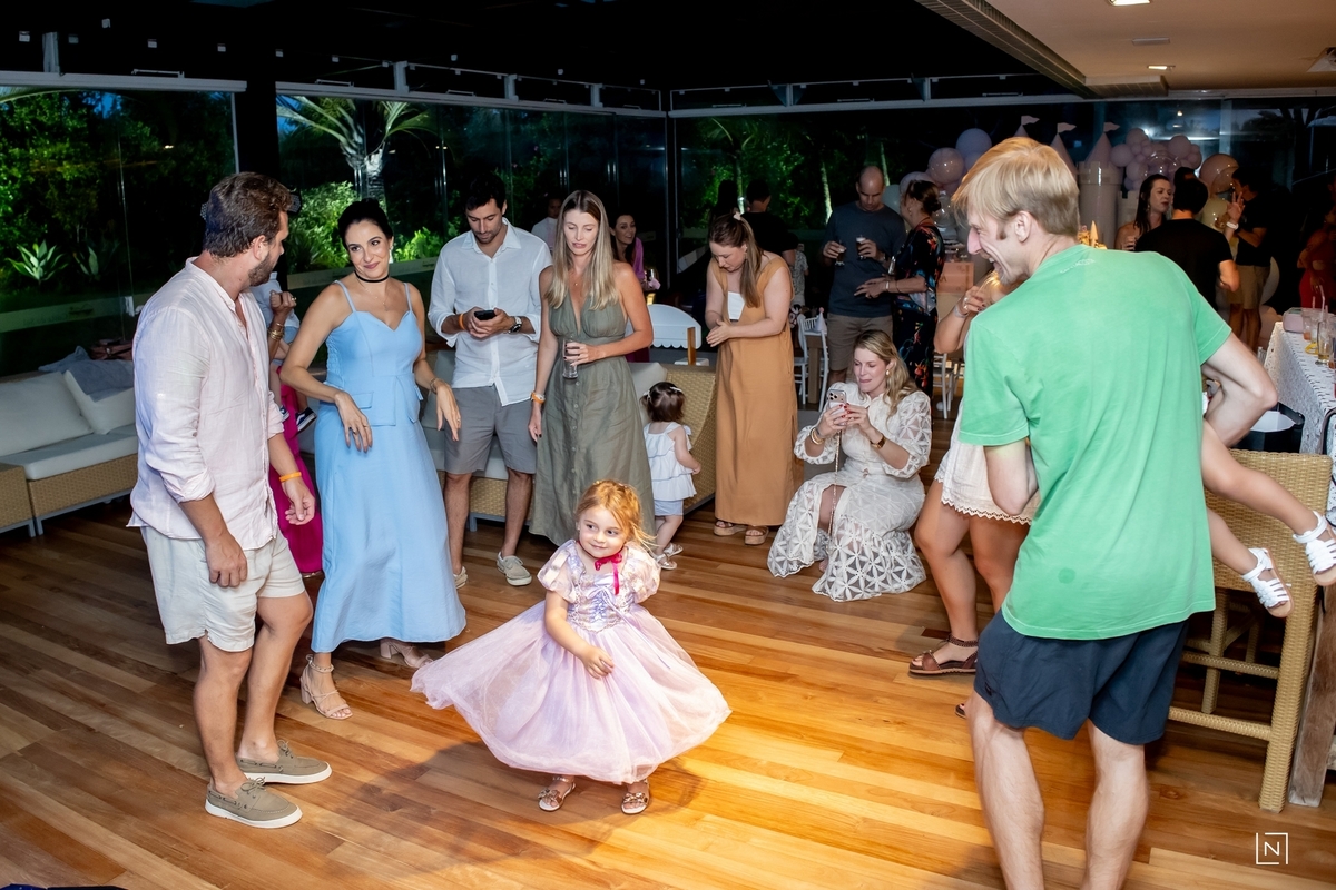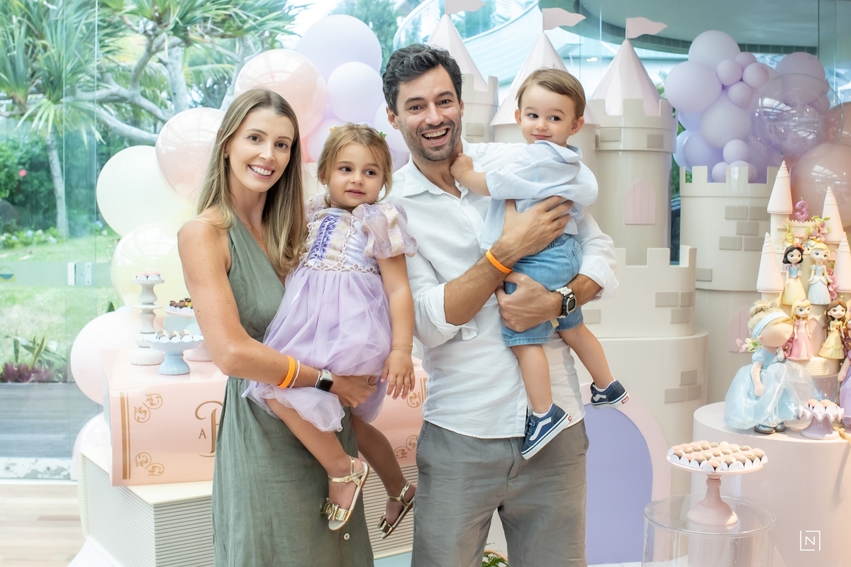 Família reunida para prestigiar a alegria da princesa e do príncipe da Julia.