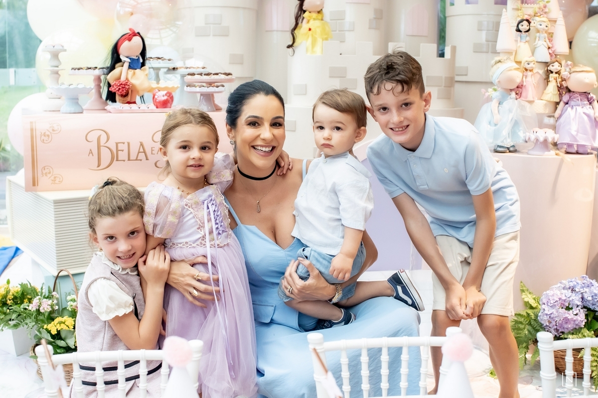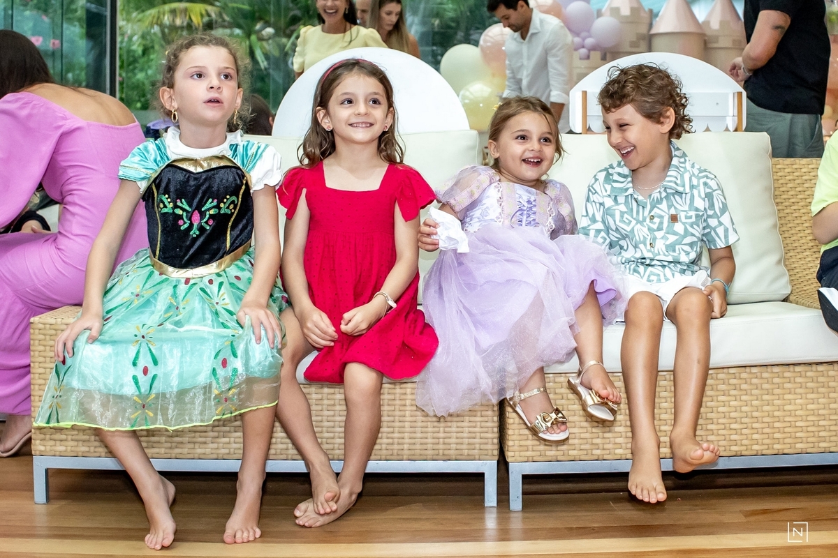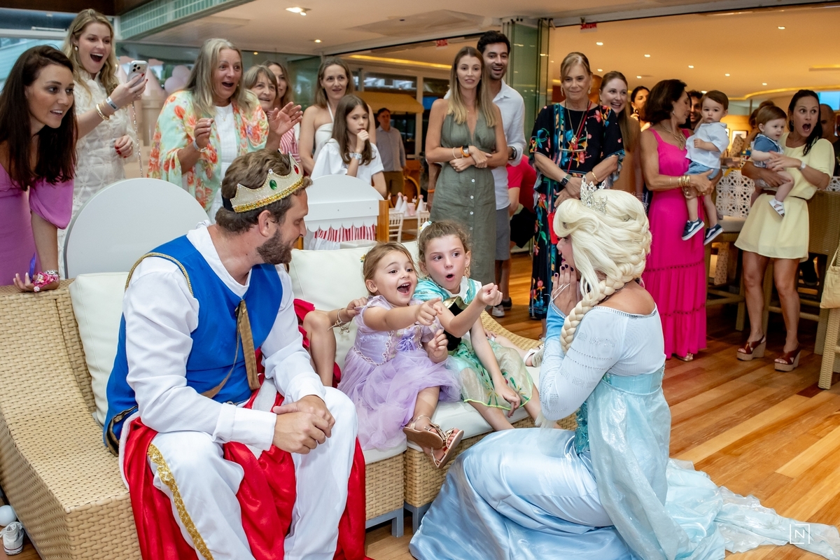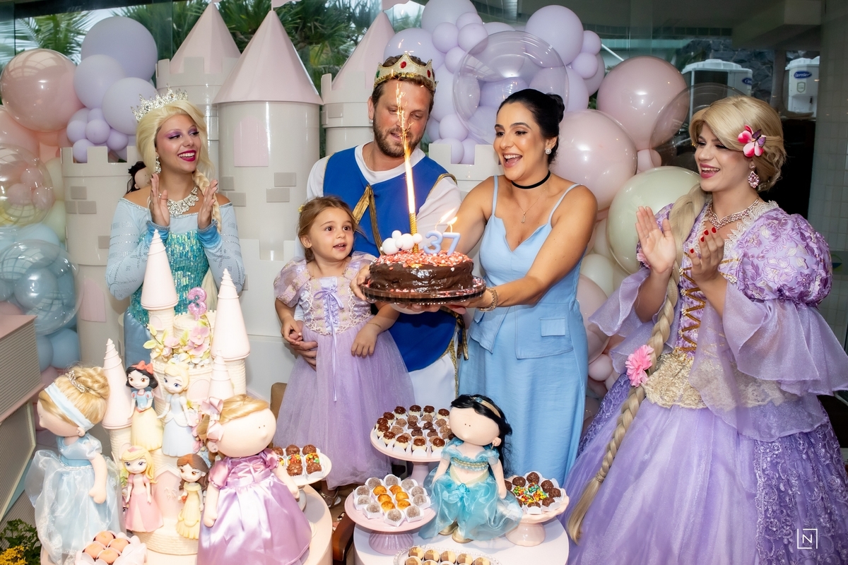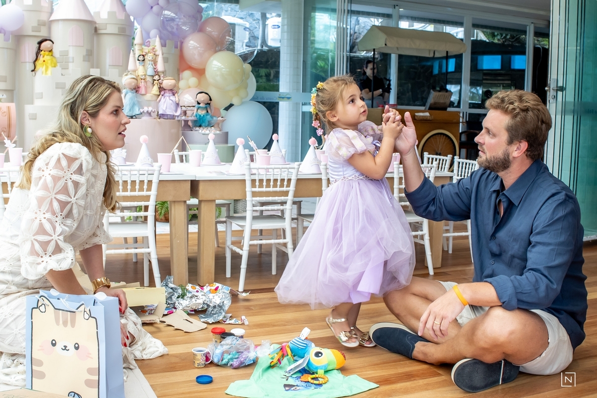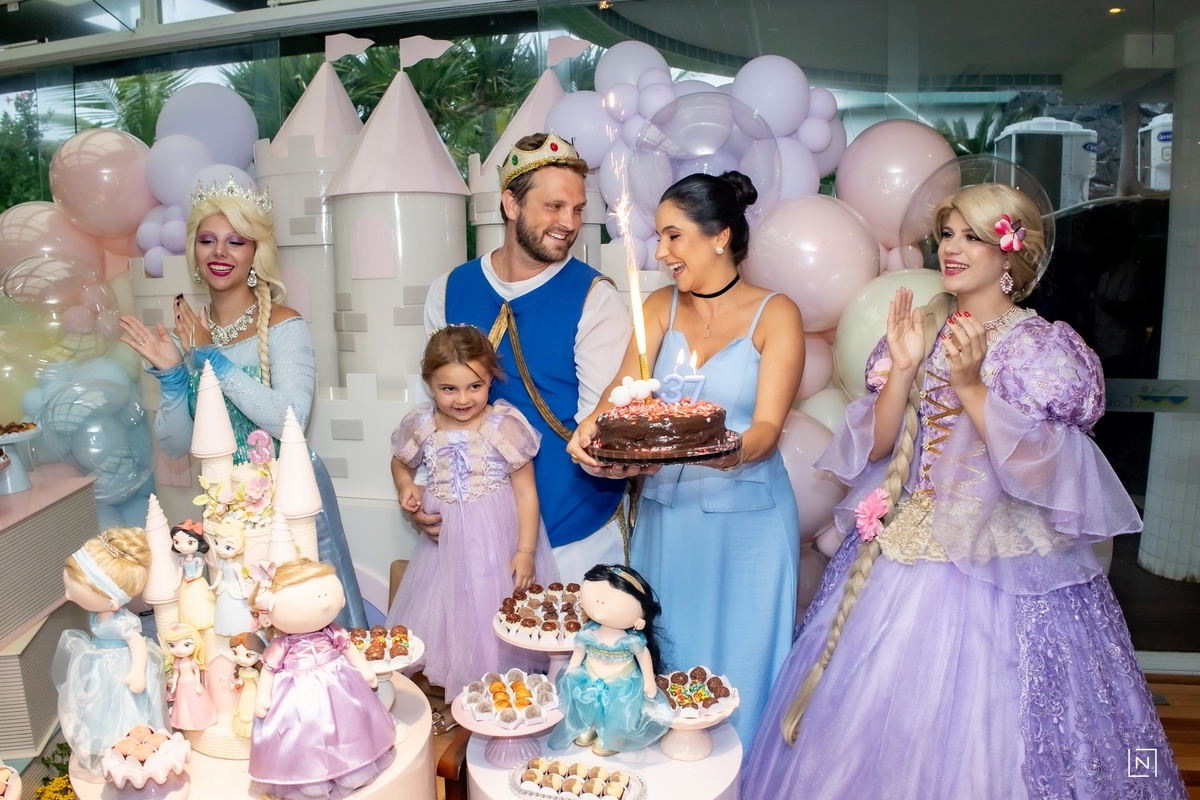 Família reunida para prestigiar a alegria da princesa e do príncipe da Julia.