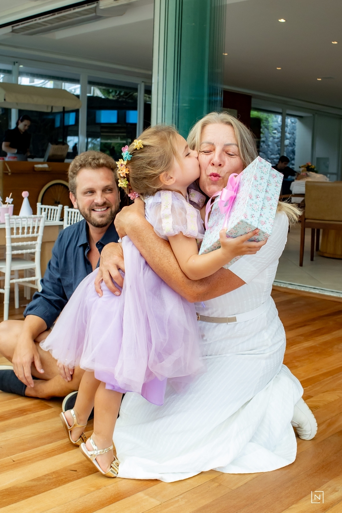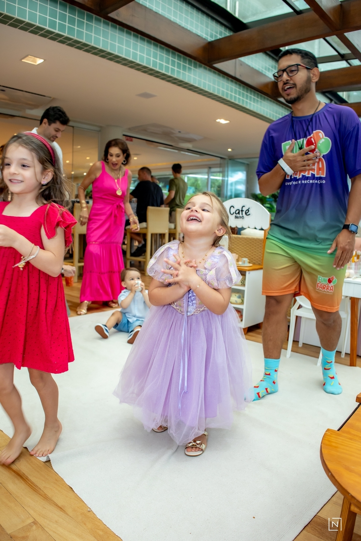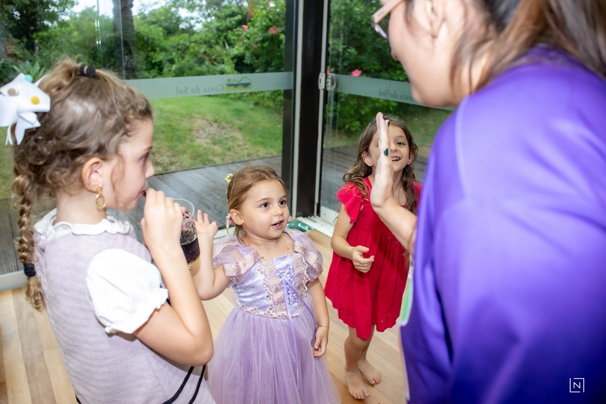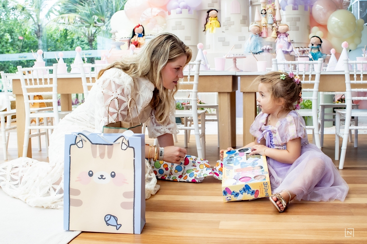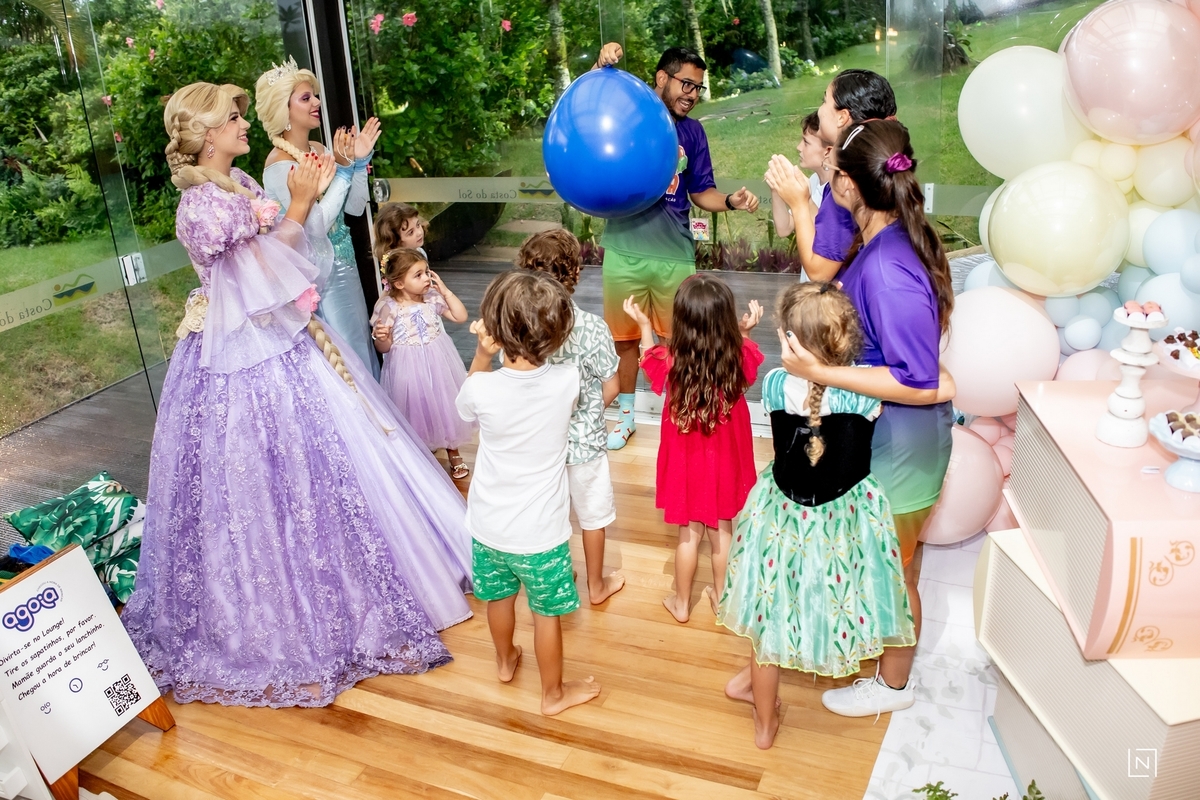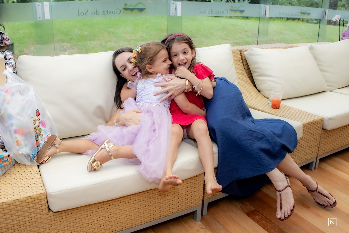 Família reunida para prestigiar a alegria da princesa e do príncipe da Julia.